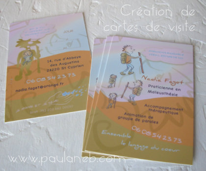 Nadia est arrivée dans mon bureau/atelier avec une idée déjà bien construite de ce qu'elle souhaitait pour sa communication. Son point de vue était clair sur l'univers de la thérapie: il fallait apporter une touche de légèreté, de joie et d'enthousiasme.