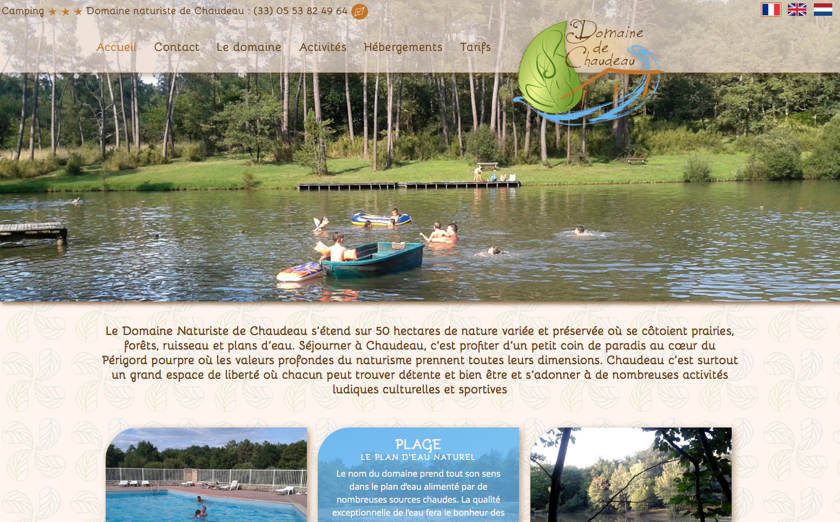 Le Domaine naturiste de Chaudeau en Dordogne souhaite refaire toute sa communication et notamment son site internet. Virginie et Xavier ont dans l'idée quelque chose qui évoque la nature et la liberté, valeurs essentielles du domaine mais également le côté familiale et conviviale de cet espace créé il y a 30 ans. Un très bel espace, 50 hectares de nature préservée, où se côtoient vastes emplacements de camping, chalets et mobil-homes, agrémenté de deux plans d'eaux, un pour la baignade, un pour la pêche, et de 4 circuits balisés de ballade en forêt. De quoi être inspiré!